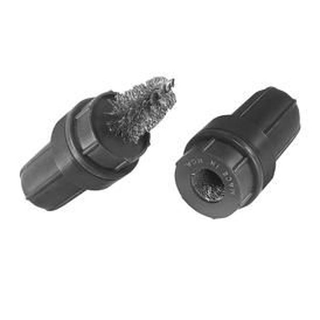 Specific service considerations:Thoroughly burnish and clean the battery cable connections! Employ a specially configured battery terminal brush (image) to service conventional post-style connections. Avoid applying acid neutralizers directly to or around the battery. Acid neutralizers consist of chemically active bases that react with the acid to leave conductive salt residues nearly as damaging as the acidic battery electrolyte. Instead, substitute clear water and a nylon bristle brush to wash away accumulated dirt and corrosive films. Be sure that battery caps are fully installed before and while cleaning the battery! Thoroughly rinse all surrounding painted surfaces until totally clean of chemical splash from the cleaning process. Check for proper torque of cable attachments and remove any paint or corrosive salt encrustations. Check for uneven solder accumulation on all of the battery cable terminal ends. Scrape, sand, or buff away excess solder accumulation to ensure clean, uniform, flat, or otherwise conforming clamping surfaces.