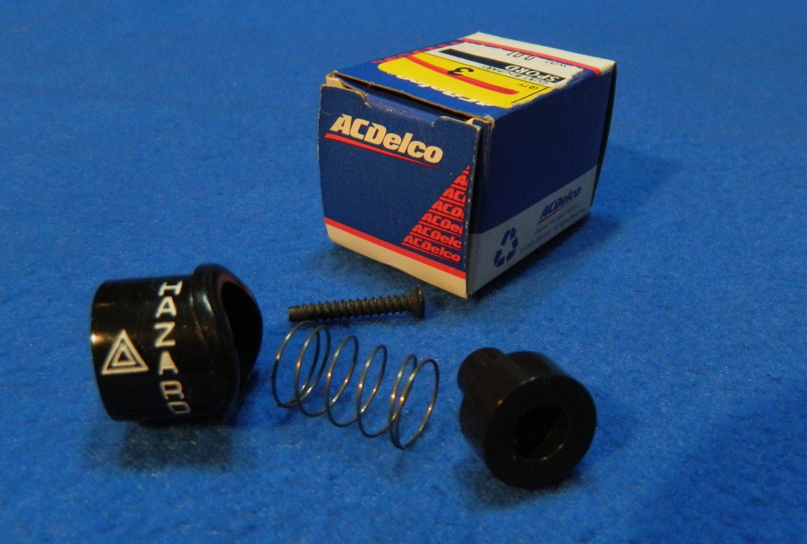 If you are looking for the button, screw, spacer and spring you are probably going to have to go to a pick and pull and bring a phillips screwdriver.  Any GM steering column up to 1992 or so would be the same